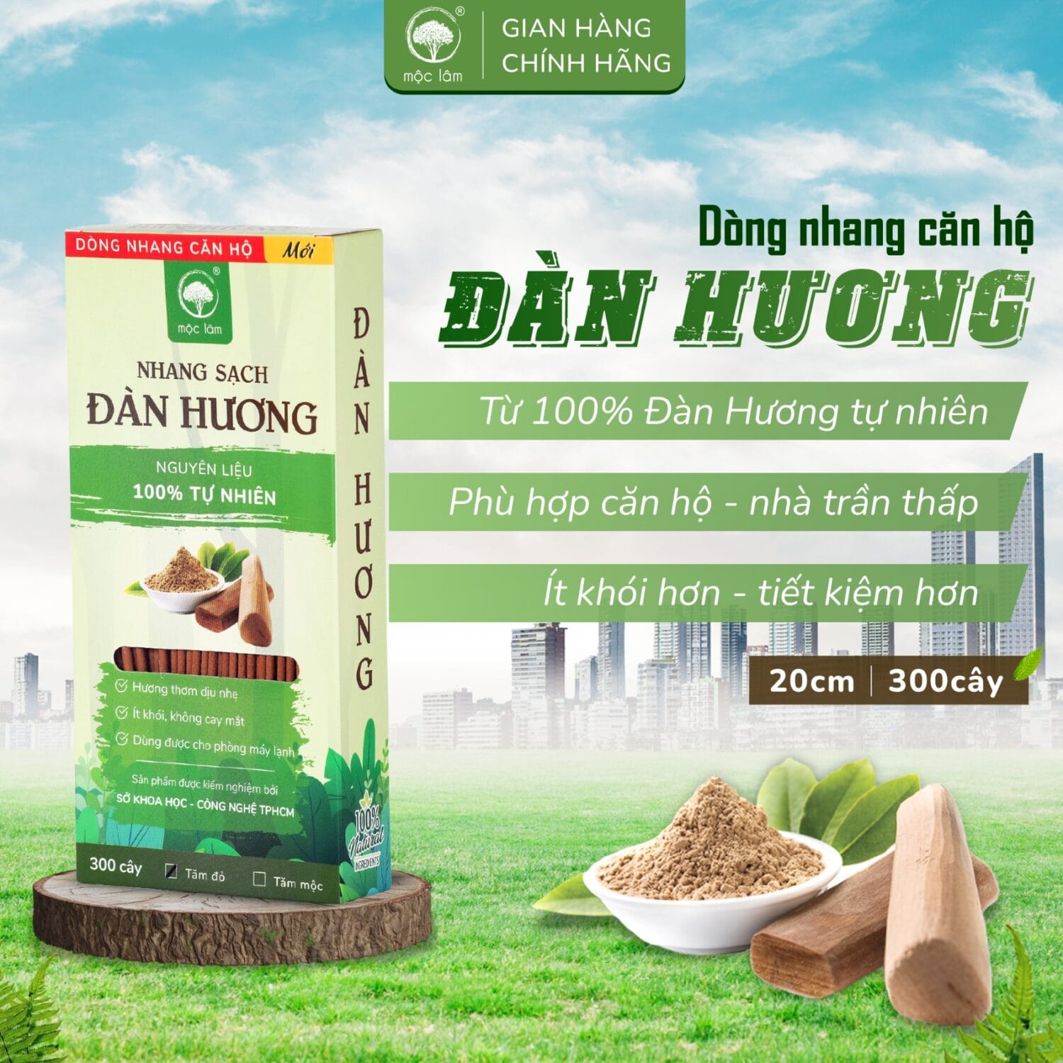 Thấu hiểu được điều đó, Mộc Lâm đã bổ sung thêm dòng sản phẩm Nhang cho chung cư – căn hộ có chiều dài 20cm, đặc biệt ít khói, là lựa chọn hoàn hảo cho các anh chị Khách hàng sinh sống ở căn hộ – chung cư hoặc không gian căn hộ văn phòng officetel.